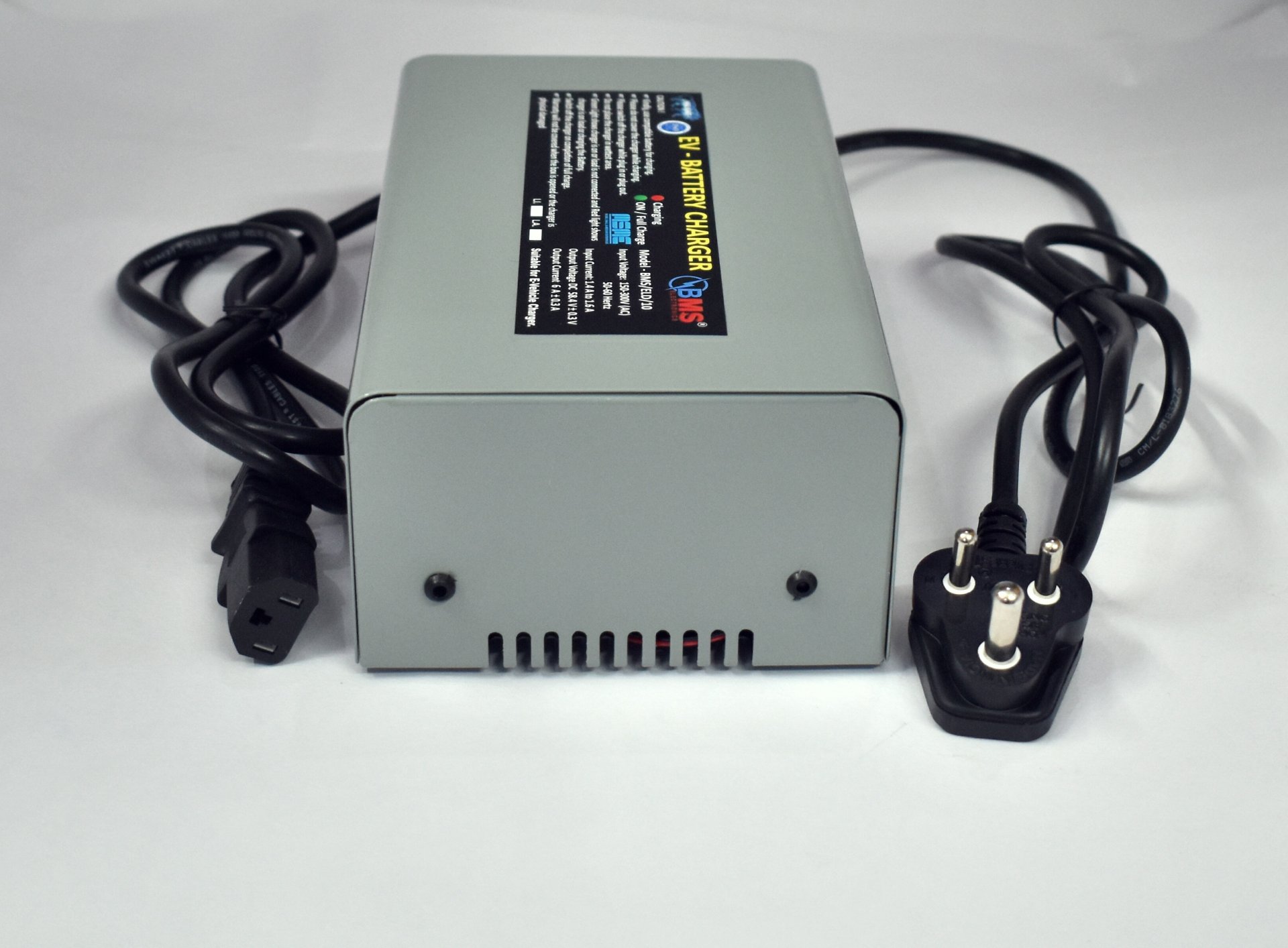 This is BMS brand electric vehicle charger for lithium ion battery as well as for lead acid battery in 48 volt. it is compatible in both lead as well as in lithium, it is a heavy duty charger,,it can charge both type of battaery also either LFP or NMC, but before using is kindly see the caution and read it carefully, it is automated battery charger made in india by BMS Electronics. this is 48 volt cut off 58.4, 54.6, 59 in 5 amp.